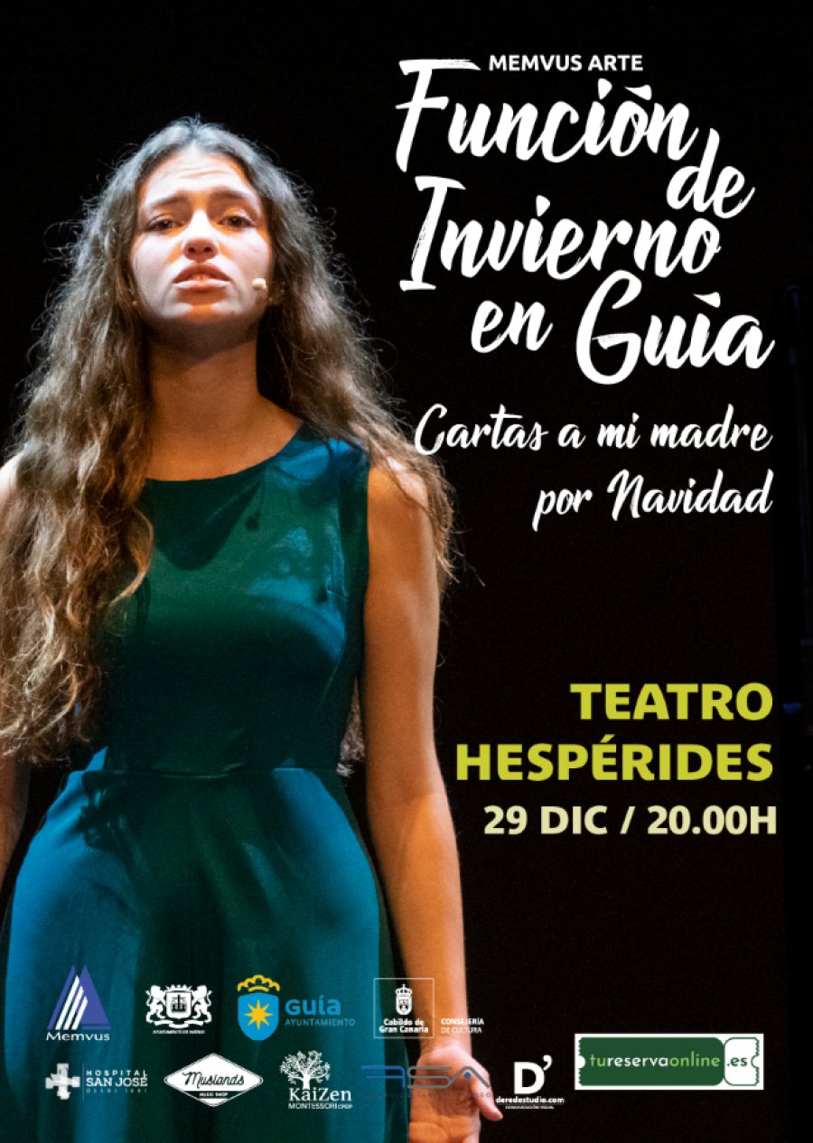 El Teatro Hespérides de Guía acoge el próximo 29 de diciembre ‘Función de Invierno’, el espectáculo más intimista de Memvus Arte, que aúna música, danza y declamación, celebra la Navidad con una adaptación contemporánea de las «Cartas a mi madre» de Rainer Maria Rilke. Desde la Concejalía de Cultura, que dirige Sibisse Sosa, se agradece a la Escuela Memvus que Guía haya sido uno de los tres municipios de toda Gran Canaria elegido para representar su nuevo espectáculo.