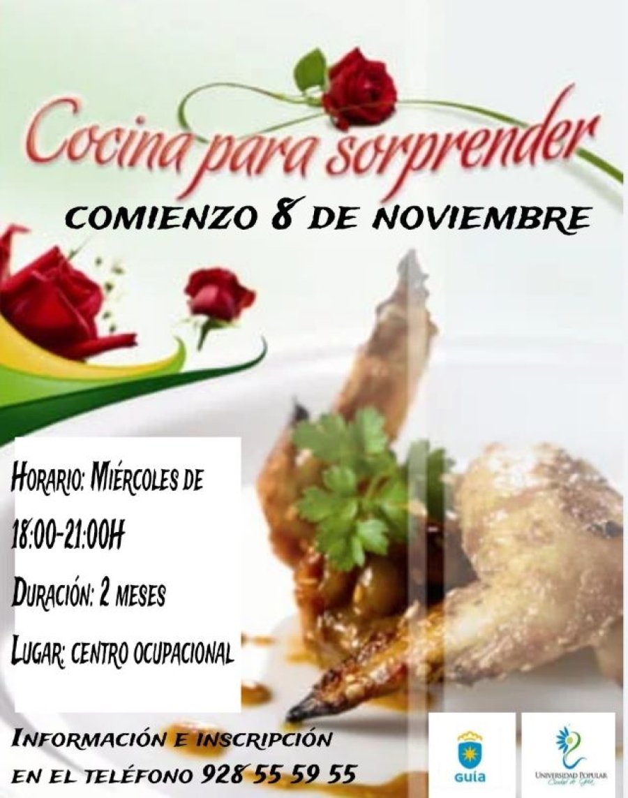 La Universidad Popular Ciudad de Guía pone en marcha en noviembre un nuevo curso de cocina, destinado en esta ocasión a todas aquellas personas que deseen preparar recetas especiales y originales ‘para sorprender a sus invitados’. Las plazas son limitadas.