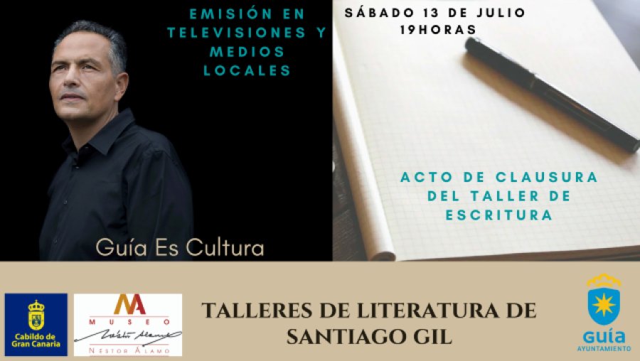 Este sábado 13 de julio, a las 19:00 horas, se emitirá en las televisiones y medios locales el acto de clausura del taller de escritura creativa impartido por el periodista y escritor Santiago Gil que se celebró recientemente en el Teatro Hespérides, una iniciativa de la Concejalía de Cultura que dirige Sibisse Sosa