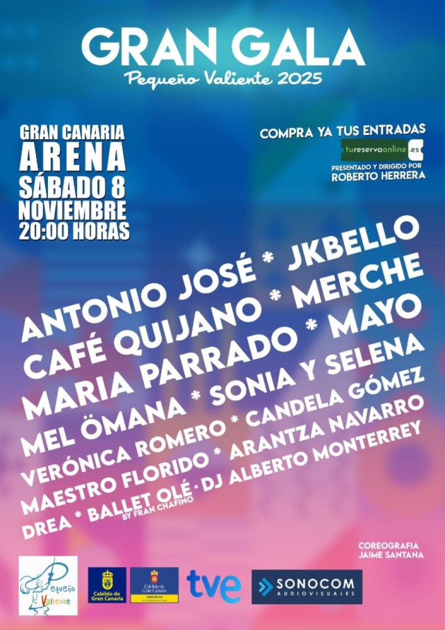 El Ayuntamiento de Guía pone a disposición de los vecinos del municipio un servicio gratuito de transporte para asistir a la Gran Gala Pequeño Valiente 2025, el próximo 8 de noviembre en el Gran Canaria Arena, con un cartel en el que figuran artistas de la talla de Antonio José, JKBello, Café Quijano, Merche, María Parrado, Mayo, Mel Ömana y Sonia y Selena, entre otros muchos.