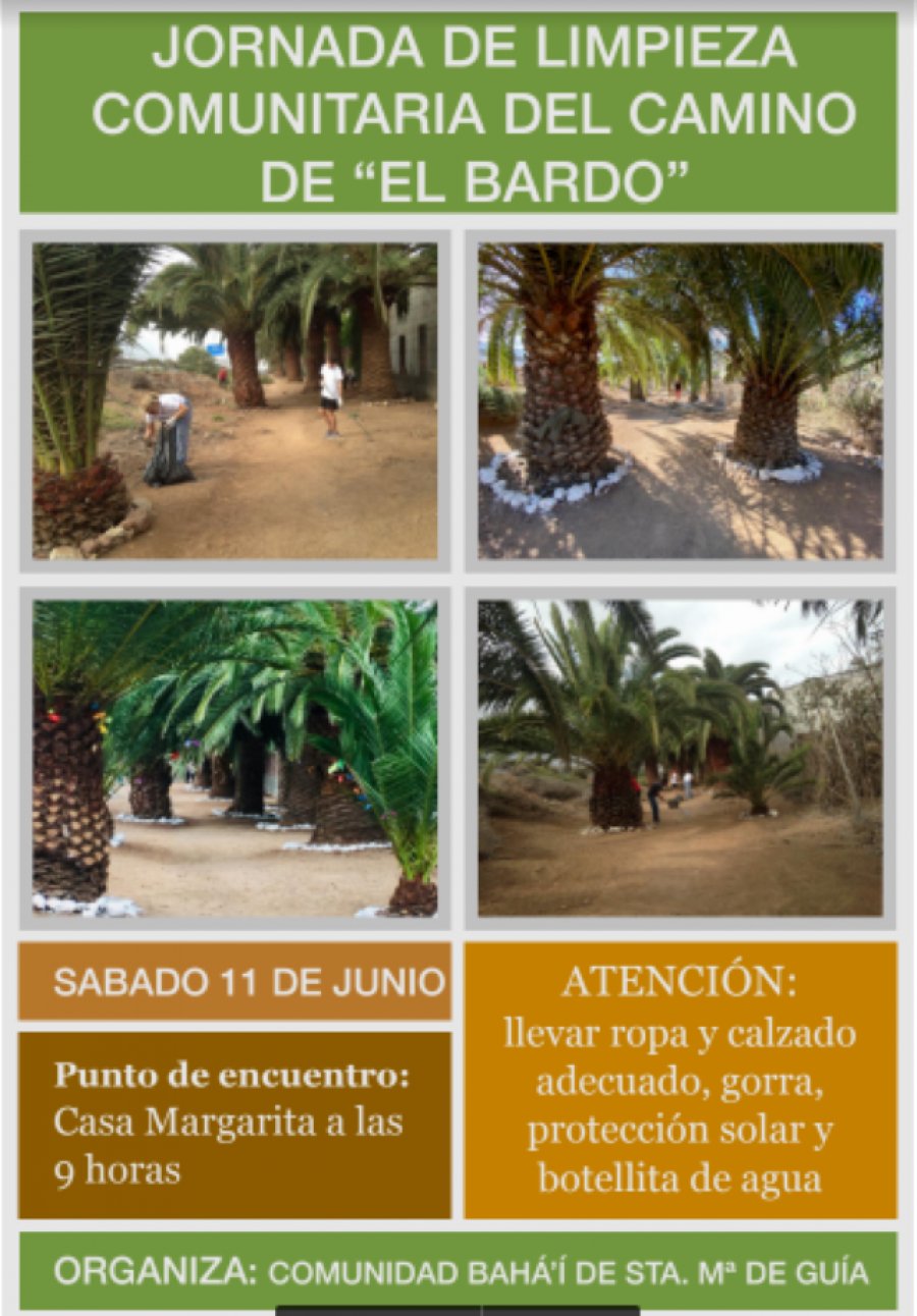 La Comunidad Bahá´i de Santa María de Guía organiza una jornada de limpieza comunitaria este sábado en El Bardo.