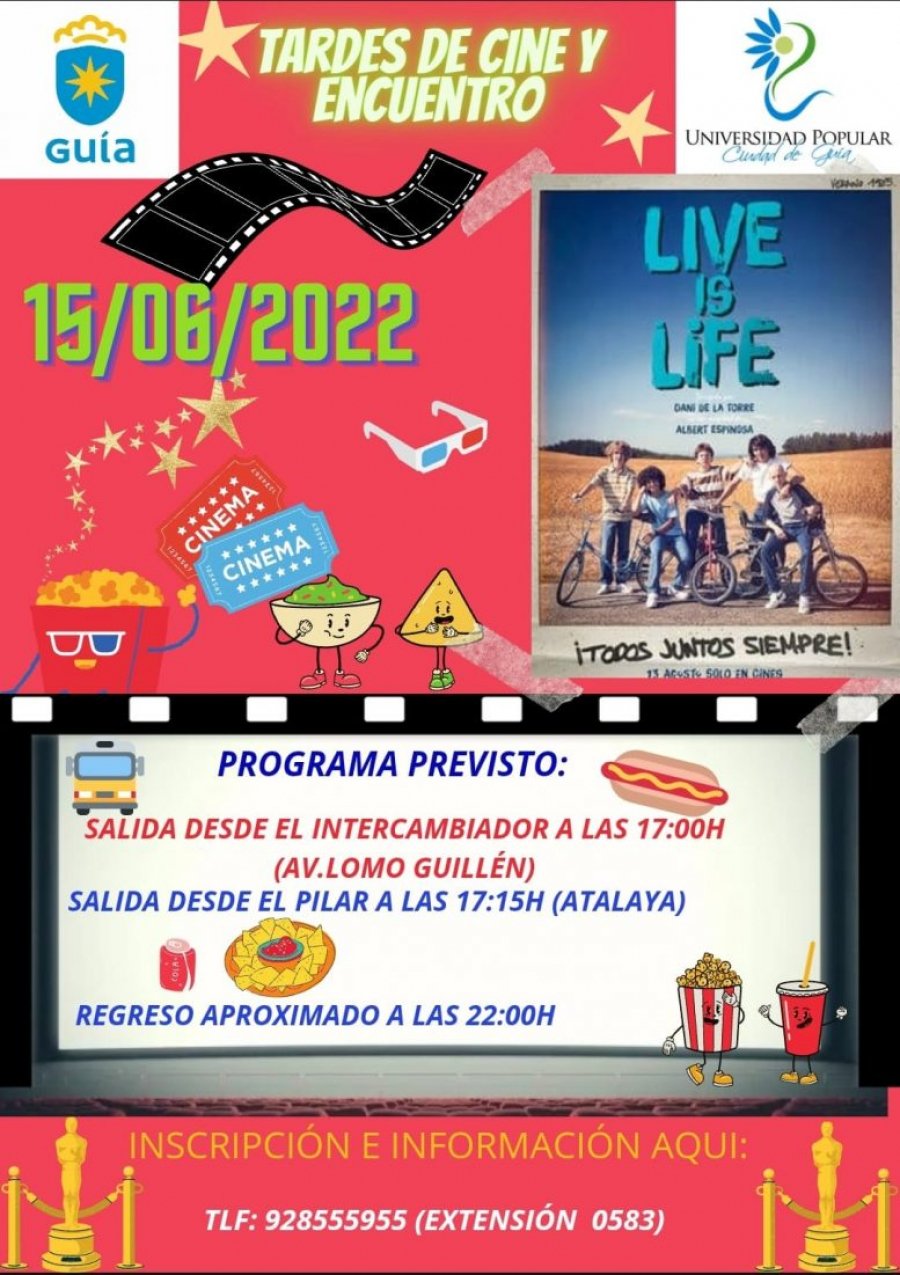 La película española ‘Live is Life: La gran aventura’, del director Dani de la Torre, es la película escogida para disfrutar el próximo miércoles 15 de junio de las “Tardes de Cine y Encuentro” que organiza la Universidad Popular Ciudad de Guía para brindar a aquellas personas que lo deseen la oportunidad de asistir, de manera más cómoda, a los cines de la capital grancanaria, facilitándoles el traslado en guagua desde el municipio así como la adquisición de las entradas