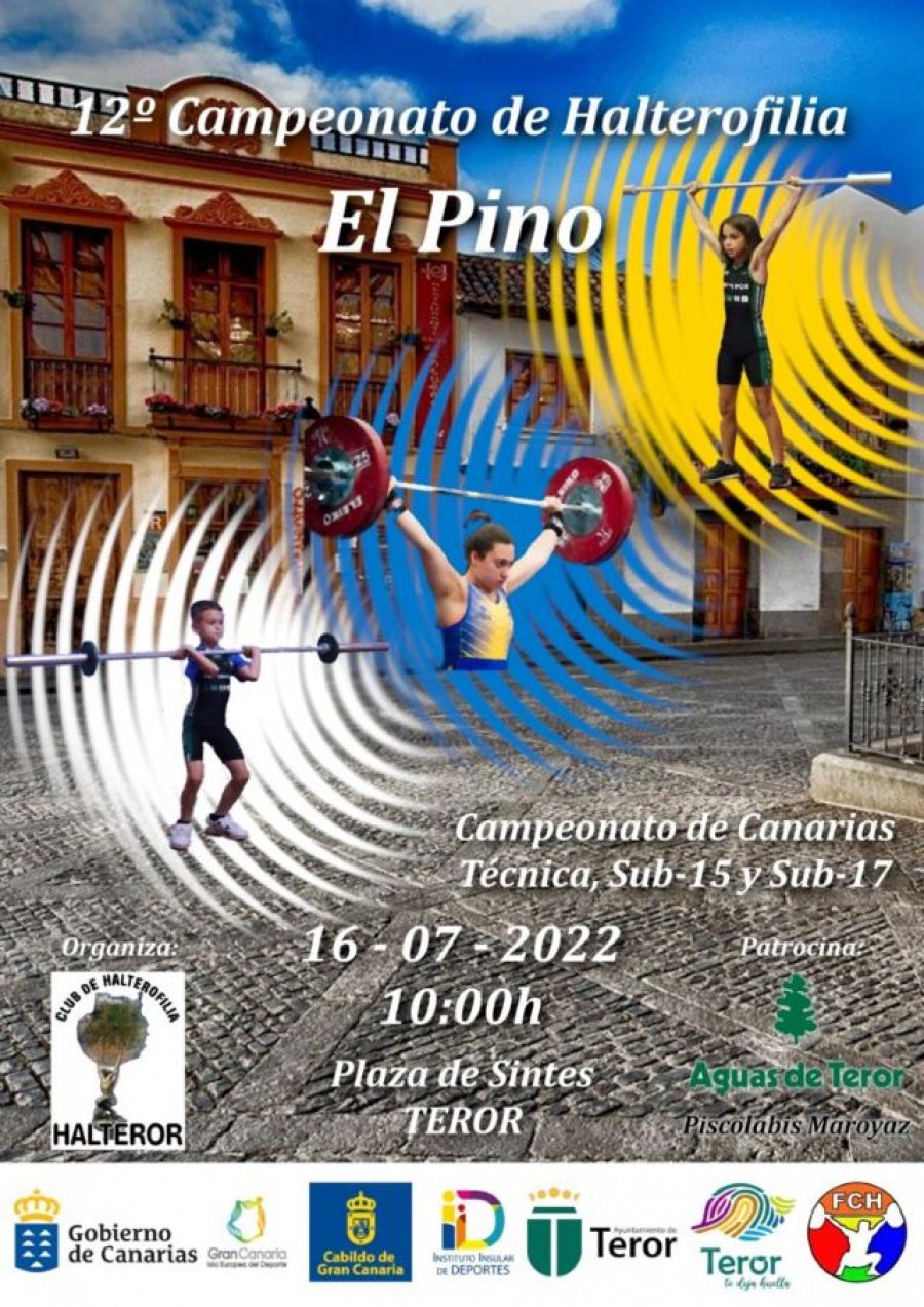 Teror acoge este sábado 16 de julio el 12º Campeonato de Halterofilia ‘El Pino’, que tendrá lugar en la Plaza de Sintes de 10:00 a 15:00 horas con la participación de unos 70 niños/as y jóvenes. El campeonato, organizado por el club de Halterofilia Halteror, con la colaboración de la Concejalía de Deportes del Ayuntamiento de Teror y Aguas de Teror, será valedero para el Campeonato de Canarias Sub 15 y Sub 17.