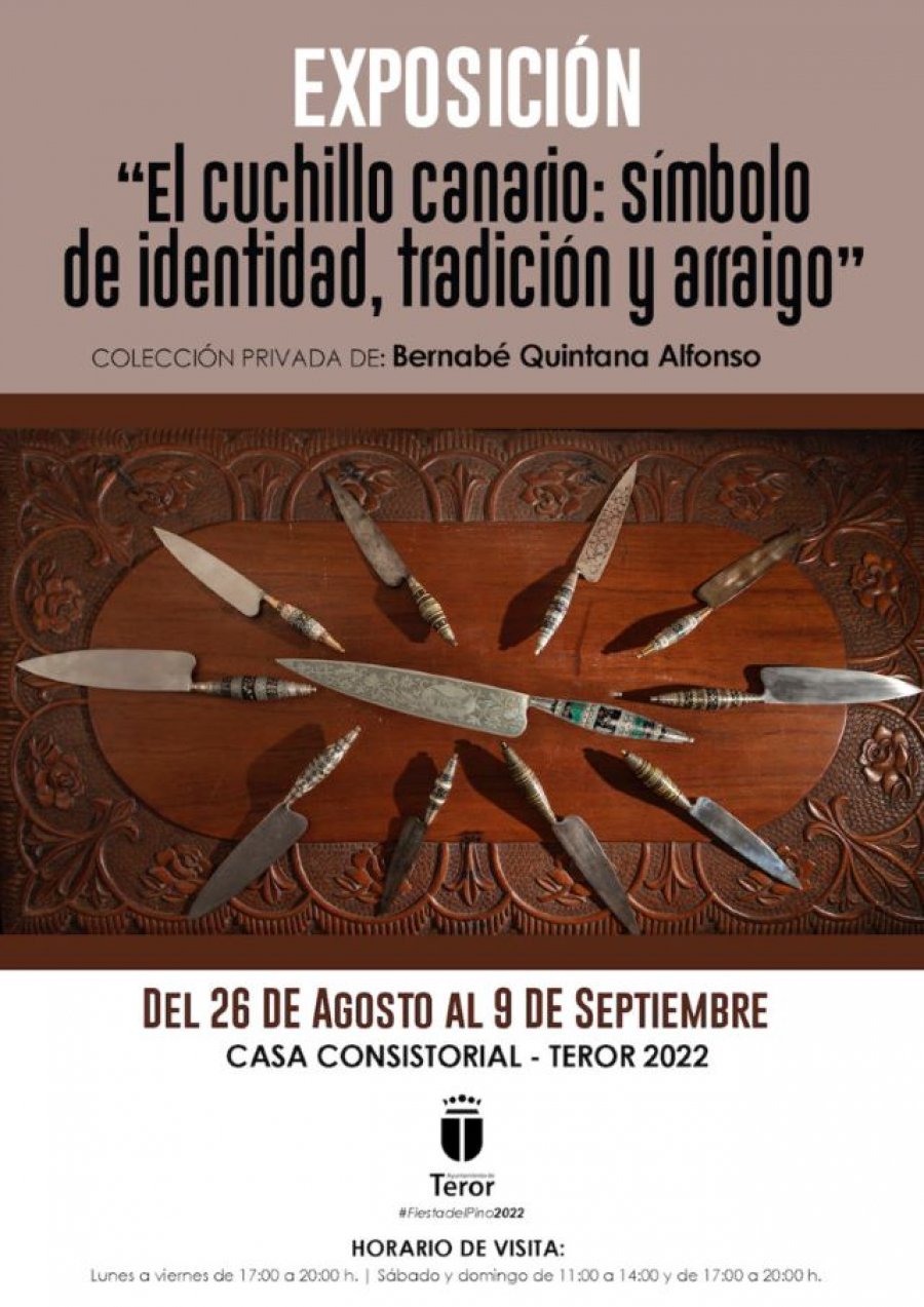 La Casa Consistorial de Teror acoge a partir del próximo viernes 26 de agosto, a las 18:00 horas, la exposición “El Cuchillo Canario: símbolo de identidad, tradición y arraigo”, donde se mostrará hasta el 9 de septiembre una de las colecciones privadas más importantes de cuchillos canarios artesanos, pertenecientes al terorense Bernabé Quintana Alfonso.