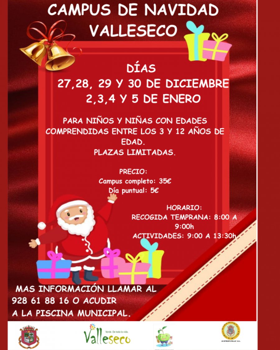 El Ayuntamiento de Valleseco, a través de la concejalía de Educación, que gestiona la edil Genita Rodríguez Santana, continúa en su afán de seguir ofertando actividades que fomenten la conciliación de la vida familiar y laboral de las familias del municipio. Volviendo nuevamente este año con más ilusión y ganas de acompañar a niñas y niños del municipio en este periodo de vacaciones navideñas.