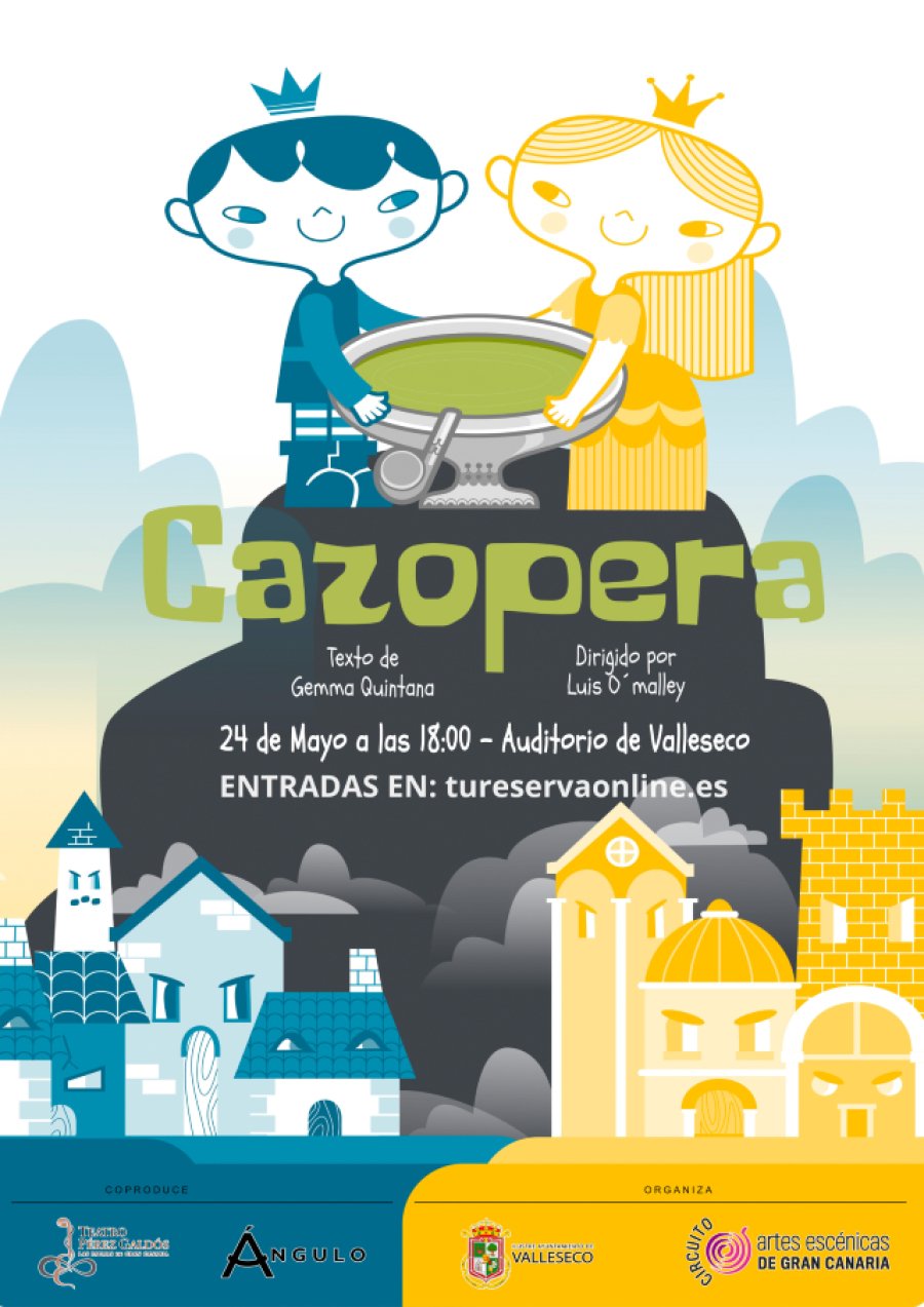 El Ayuntamiento de Valleseco, a través de su concejalía de Cultura, que gestiona el edil, Suso Pérez Rodríguez, se complace en anunciar la llegada de la obra infantil “Cazopera” al Auditorio del municipio el próximo sábado, 24 de mayo, a las 18:00 h.