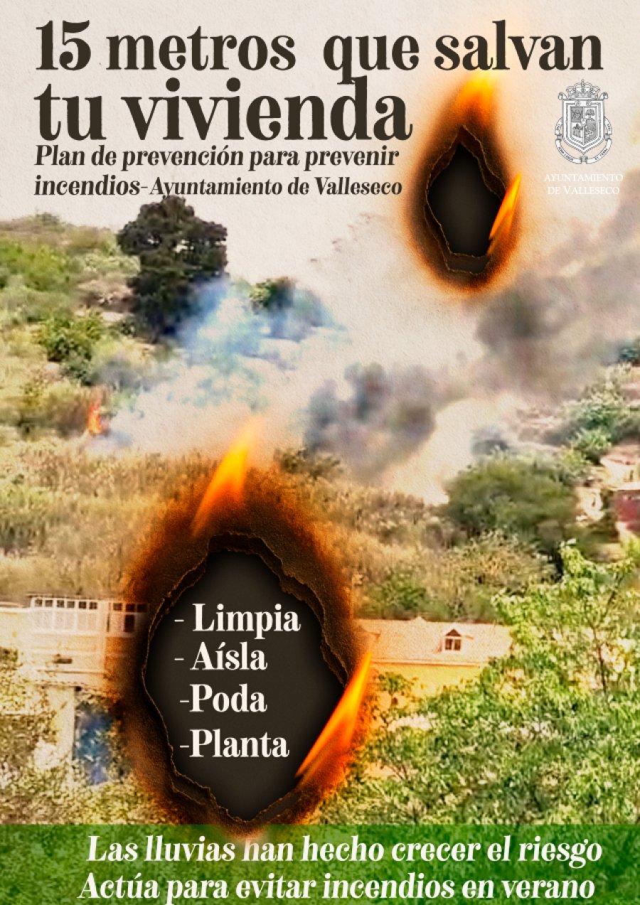 El Ayuntamiento de Valleseco ha presentado una nueva campaña de concienciación a la población bajo el lema “15 metros que salvan tu vivienda”, una iniciativa que busca reducir el riesgo de incendios forestales en el municipio mediante acciones sencillas pero fundamentales en el entorno de los hogares. Con el objetivo de reforzar las labores de prevención de incendios forestales, especialmente tras las abundantes lluvias registradas en los últimos meses por el paso de varias borrascas por Canarias.