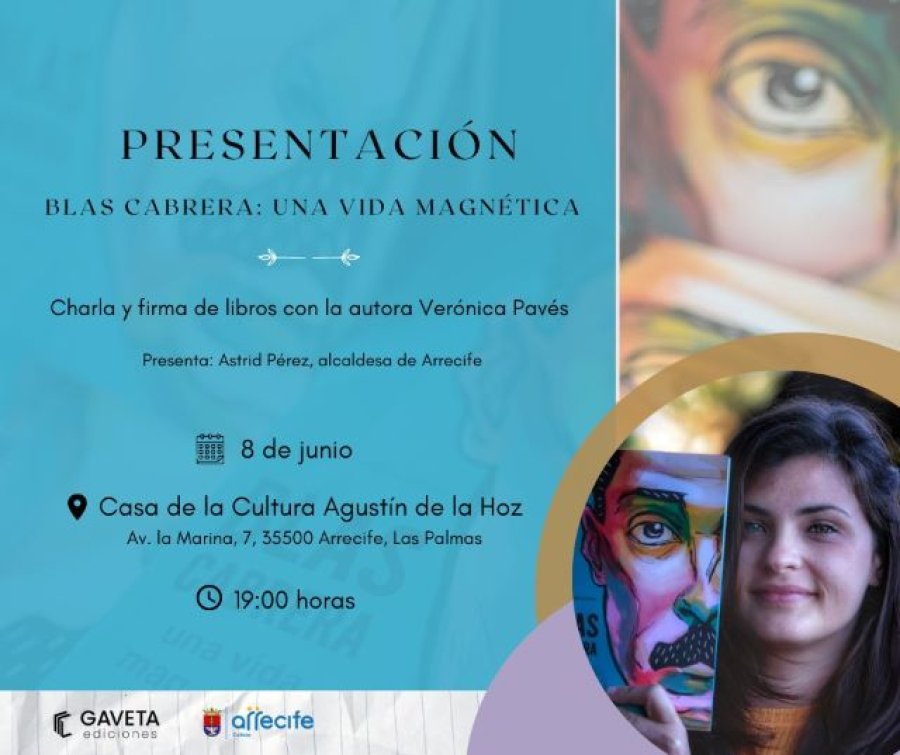 La periodista y premio Concha García Campoy, Verónica Pavés, presentará el próximo jueves 8 de junio, a las 19.00 horas, su libro “Blas Cabrera: Una vida magnética” en Lanzarote.