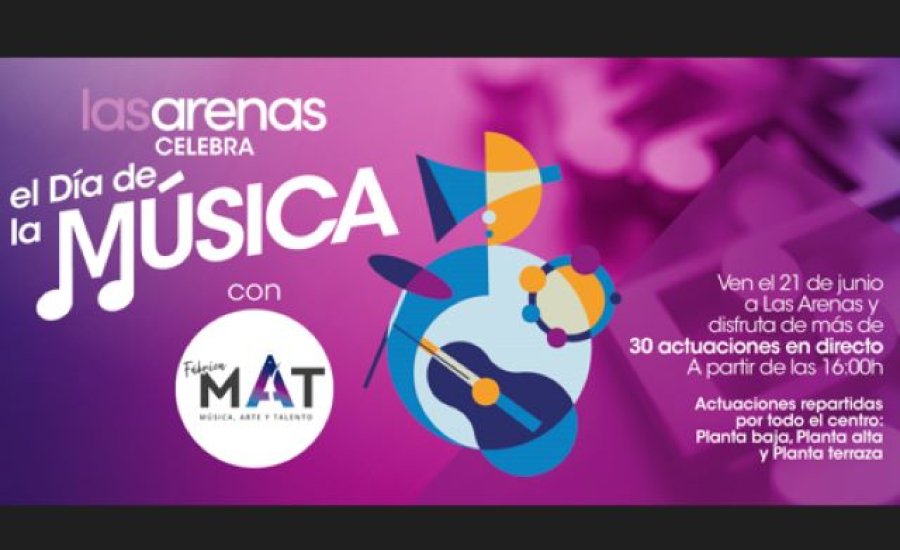 Fábrica MAT, Escuela de Música Moderrna de Fábrica La Isleta, convoca a todo el público a participar activamente en la celebración del Día Europeo de la Música 2023 hoy miércoles 21 de junio en el Centro Comercial Las Arenas, patrocinador de la iniciativa