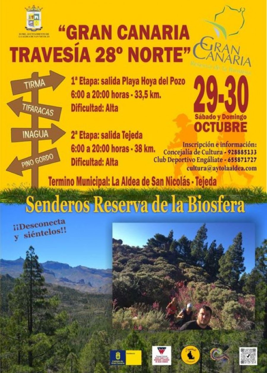 Se trata de una ruta con dos etapas y dificultad alta a realizar los días 29 y 30 de octubre, con salidas desde la playa Hoya del Pozo y Tejeda, respectivamente.