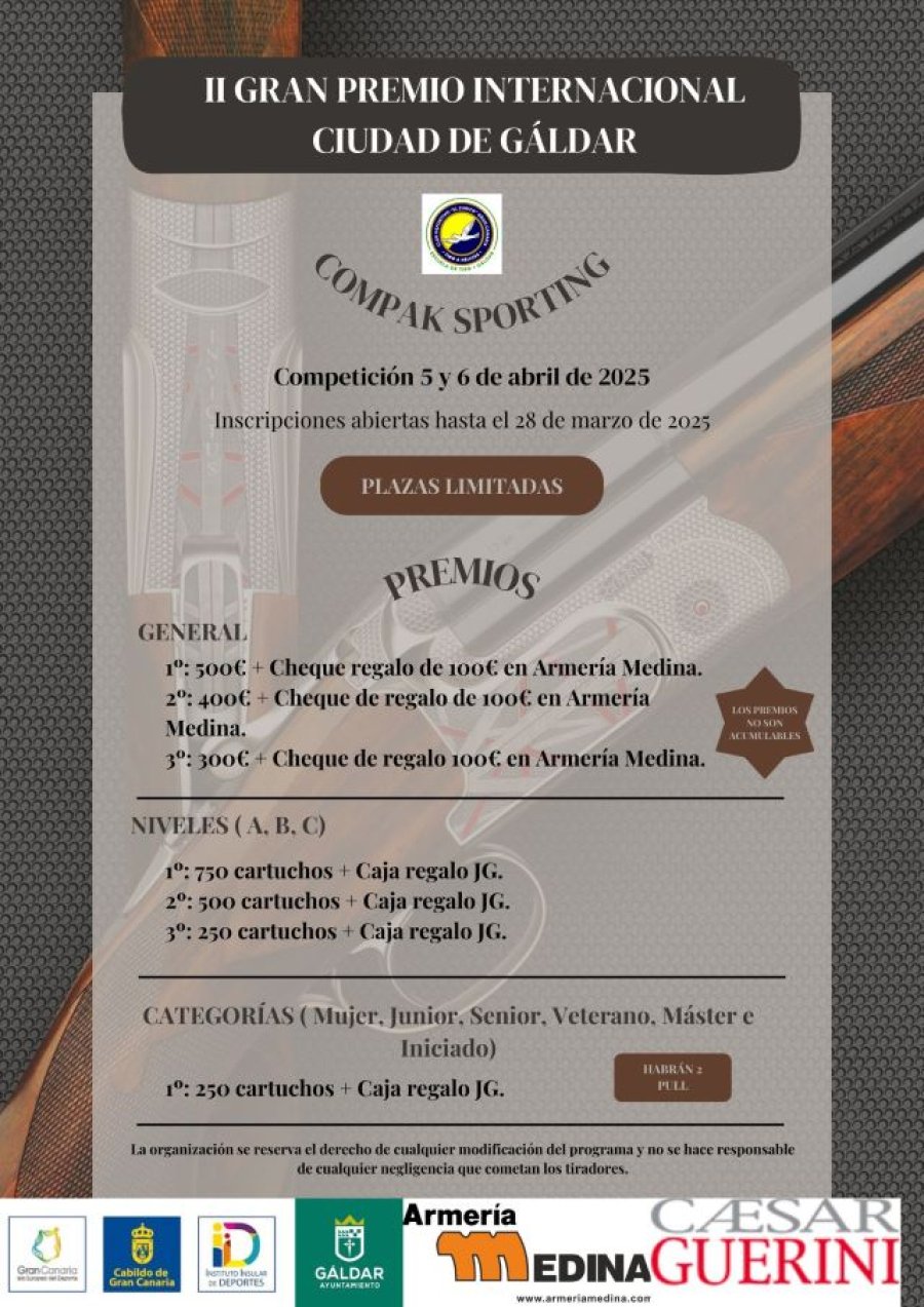 El campo de tiro El Cerrillal acogerá el 5 y 6 de abril de 2025 el II Gran Premio Internacional Ciudad de Gáldar – Compak Sporting, con la colaboración del Ayuntamiento de Gáldar