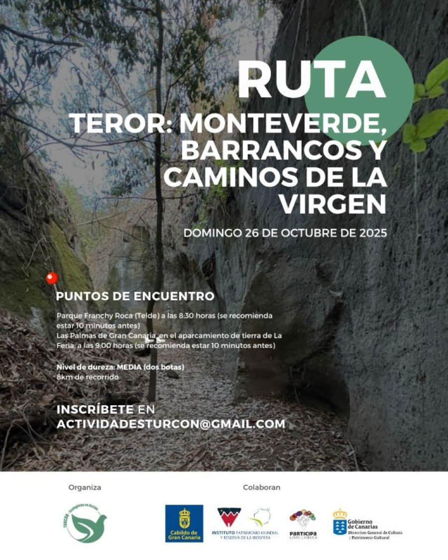 La ruta propuesta para este mes por Turcón-Ecologistas en Acción nos llevará a conocer caminos y barrancos donde podemos observar una amplia muestra de la comunidad natural denominada Monteverde y Laurisilva, un bosque exuberante y de aspecto selvático