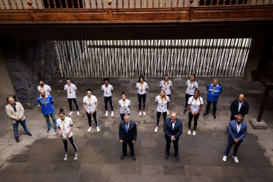El homenaje brindado por el Gobierno de Canarias a las deportistas e integrantes del cuerpo técnico del primer equipo femenino del CV Haris contó con la asistencia del presidente de ese club tinerfeño, David Martín, y de representantes de los principales patrocinadores del equipo, las marcas Sanaya y Libby’s.