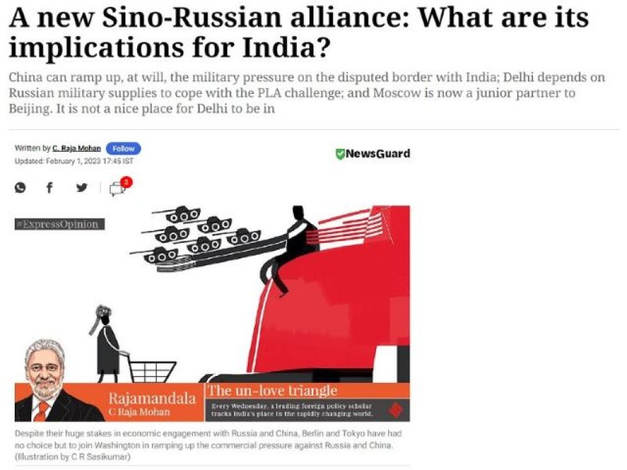 La última columna del célebre intelectual indio C. Raja Mohan para The Indian Express está repleta de falacias. Titulado “ Una nueva alianza chino-rusa: ¿Cuáles son sus implicaciones para la India? ”, se basa en la falsa presunción de que Rusia y China supuestamente están en una “alianza”, que él describe como impulsada por su deseo de “dominar Eurasia”. Sin embargo, Mohan concluye que ha fallado y luego insta a India a girar hacia los EE. UU. en respuesta. Todo lo que escribió está completamente mal y ahora explicaré por qué.