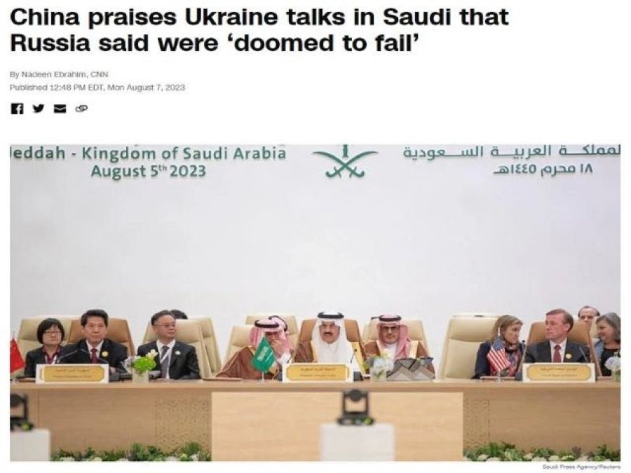 CNN publicó un artículo el lunes provocativamente declarando que " China elogia las conversaciones sobre Ucrania en Arabia Saudita que Rusia dijo que estaban 'condenadas al fracaso' ", que tenía la intención de convertir las conversaciones de Jeddah en un tema clave en los lazos entre China y Rusia al presentar falsamente la participación de Beijing en ellas. como un desaire contra Moscú. Ambos miembros de la Entente Sino-Russo , que no es una “ alianza ” sino más bien una estrecha asociación estratégica sin precedentes destinada a acelerar la multipolaridad , sabe mejor que caer en esta obvia artimaña.