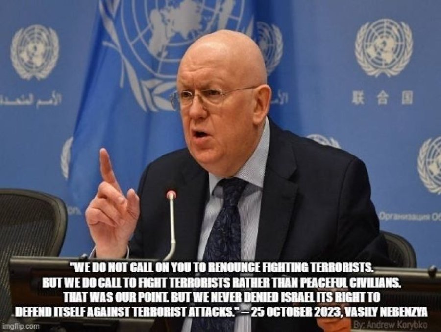 El Representante Permanente de Rusia ante la ONU, Vasily Nebenzya, aclaró la política de su país hacia la última guerra entre Israel y Hamas después de haber sido criticado por ello por su homólogo israelí, quien objetó el veto de Moscú a la resolución de Estados Unidos que fue presentada la semana pasada después de que Estados Unidos vetara la anterior de Rusia. uno. Se le preguntó retóricamente qué haría Rusia en caso de ataques terroristas contra ella, lo que implicaba que su país estaba tratando a Israel de manera hipócrita, lo que lo llevó a explicar su enfoque en detalle.