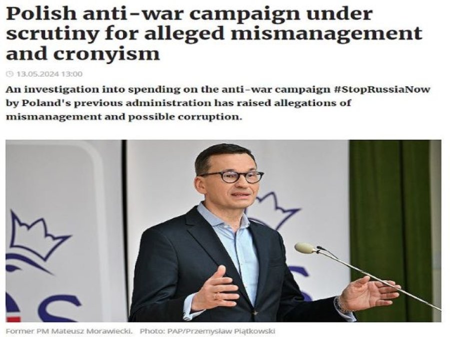 La radio estatal Polskie informó en el informe de Onet que la Oficina Suprema de Auditoría está investigando la campaña #StopRussiaNow del antiguo gobierno nacionalista conservador por supuesta malversación de fondos. Según ellos, el partido “Ley y Justicia” (PiS) encargó este trabajo a empresas relacionadas con sus miembros, lo que podría dar lugar a cargos. Esta noticia coincide con la represión de meses de duración del primer ministro liberal-globalista Donald Tusk contra la ahora oposición.