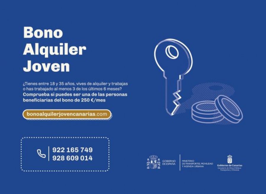 La Consejería de Obras Públicas, Transportes y Vivienda del Gobierno de Canarias, que dirige Sebastián Franquis, abona ya a 878 jóvenes de las islas el cheque de hasta 250 euros mensuales del Bono Alquiler Joven en Canarias tras hacer pública una nueva resolución con 525 nuevos beneficiarios que se unen a los 353 de la primera resolución que se publicó en septiembre. El Instituto Canario de la Vivienda (ICAVI), a través de quién se gestiona esta ayuda, destina al pago de este bono más de cinco millones de euros para cubrir los 24 meses de alquileres que reconoce esta subvención a estos 525 jóvenes.