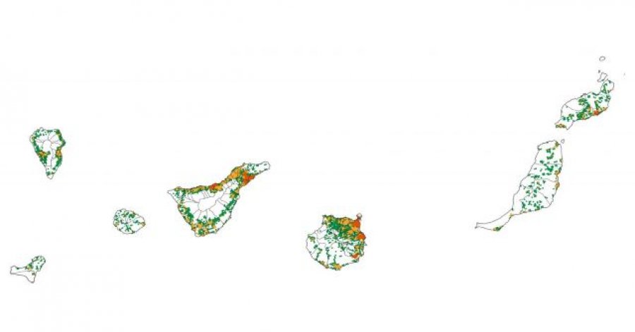 Sin embargo, esta metodología es muy complicada de aplicar en ámbitos insulares como Canarias, donde la distribución de la población no cumple con unos criterios de concentración en torno a grandes núcleos urbanos y a partir de estos existe una distinción clara entre las áreas urbanas y rurales, sino que encontramos una dispersión en las edificaciones que concentran una alta densidad de población.