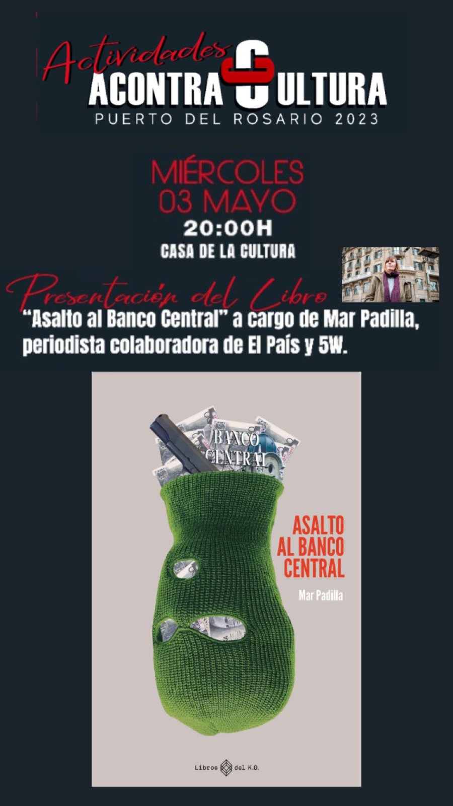 La presentación del libro, que tendrá lugar a las 20.00 horas en la Casa de la Cultura de Puerto del Rosario, se programa bajo el paraguas del Festival A Contracultura 2023 que organiza la Concejalía de Cultura del Ayuntamiento de Puerto del Rosario, dirigida por Juan Manuel Verdugo.