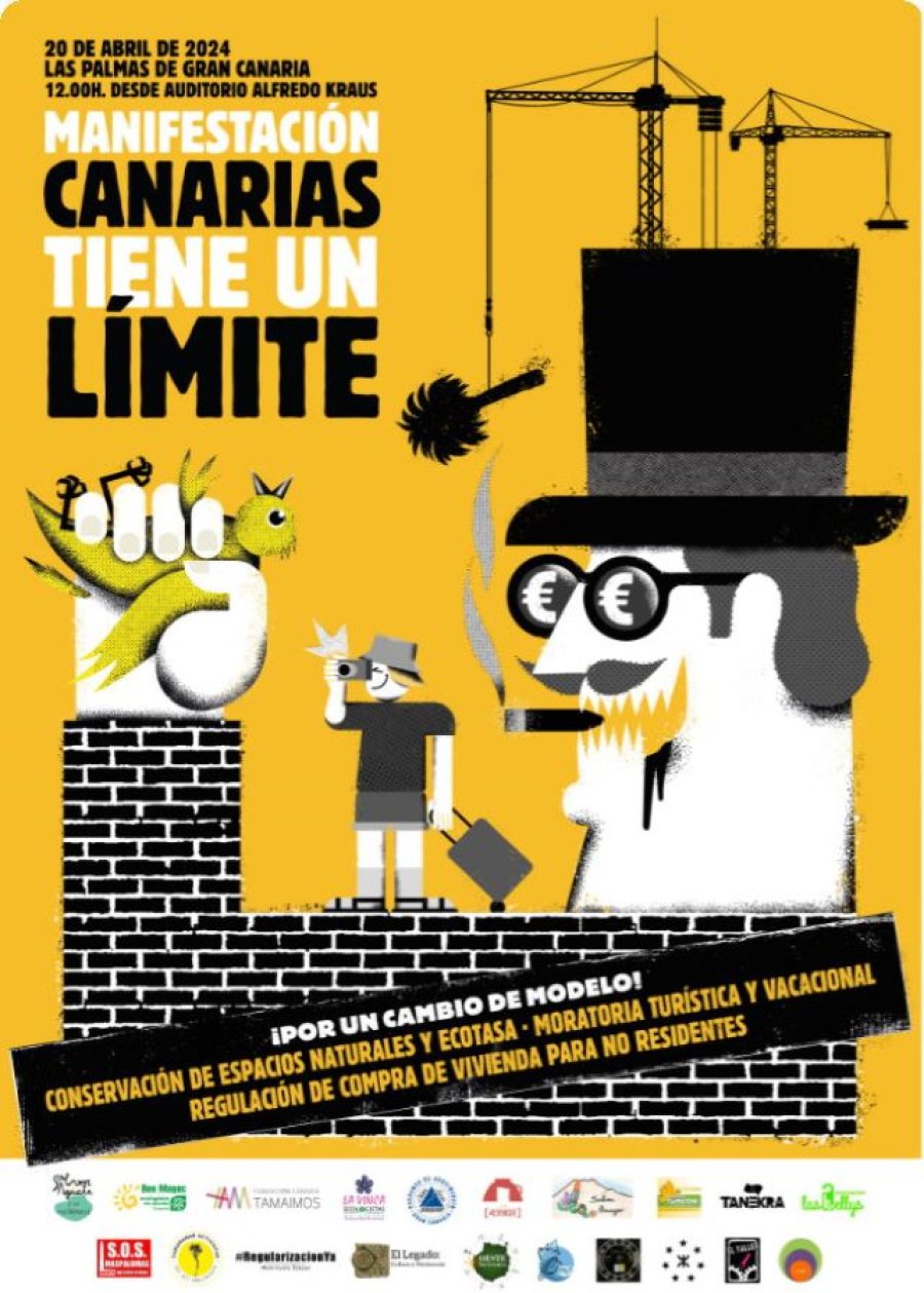 El próximo sábado 20 de abril saldremos a la calle para volver a reclamar lo que es de sentido común; controlar una situación que nos ahoga y nos expulsa de nuestro propio territorio. Las dos capitales canarias ya tienen convocadas sus movilizaciones, a las que pronto se unirán el resto de islas. Es el momento de reclamar un cambio de modelo y de volver a gritar, desde todas las islas, ¡CANARIAS TIENE UN LÍMITE!