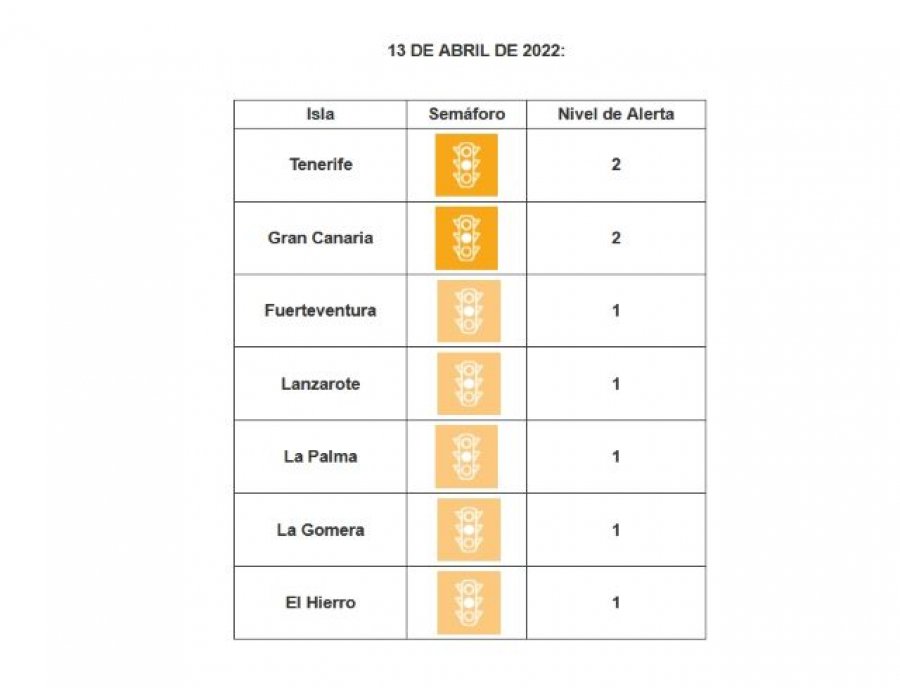 Según este informe, todas las islas continúan en el mismo nivel en el que se encontraban: Tenerife y Gran Canaria en nivel 2, o de riesgo medio, y Fuerteventura, Lanzarote, La Palma, La Gomera y El Hierro en nivel 1, o de riesgo bajo aunque con una mejoría en los indicadores de ocupación de camas y de incidencia acumulada en mayores de 60 años.