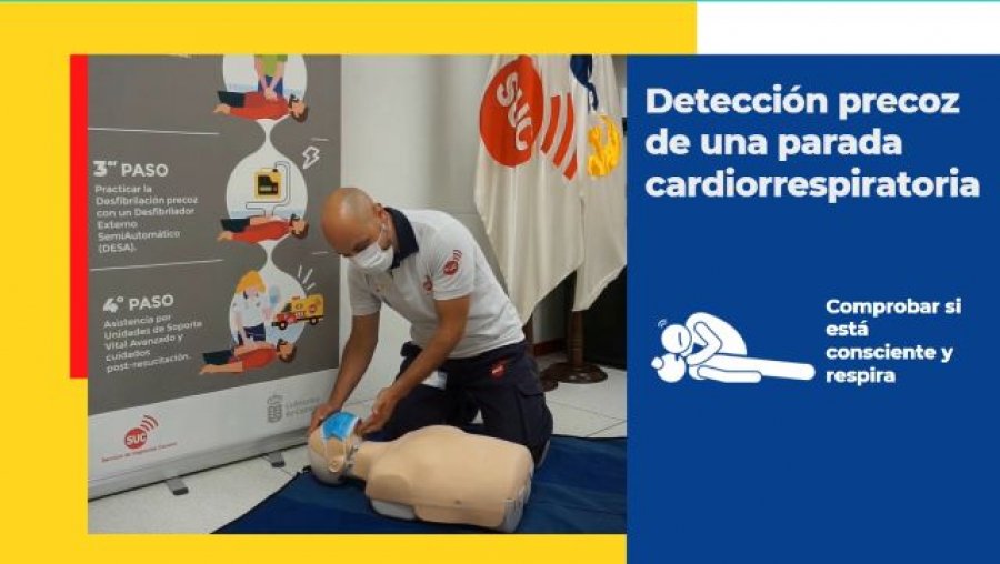 Cualquier ciudadano puede ser testigo de una emergencia o un accidente, tanto en una vivienda como en la vía pública, y convertirse en el primer interviniente. La asistencia inicial al afectado puede ser vital para su supervivencia y podrá evitar graves secuelas, especialmente si se encuentra en parada cardiorrespiratoria, situación en la que la vida de la persona depende de una intervención inmediata. En este sentido, el Servicio de Urgencias Canario (SUC), adscrito a la Consejería de Sanidad del Gobierno de Canarias, nos recuerda cómo poner en práctica la cadena de supervivencia hasta la llegada de los servicios de emergencia.